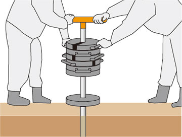 100kgの荷重をかけても貫入しない場合は、ロッドを回転させ、25cm貫入させるのに必要な半回転数を記録します。