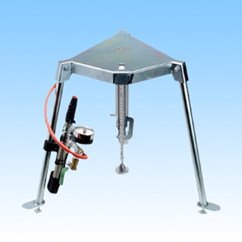 2.空気圧を試験機の下部に取り付けられたシリンダに送り、 先端の載荷板が地盤に押し込まれた沈下量を計測します。