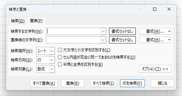 オプション機能で詳細な書式設定をしたり、検索方法を選択したりできます。