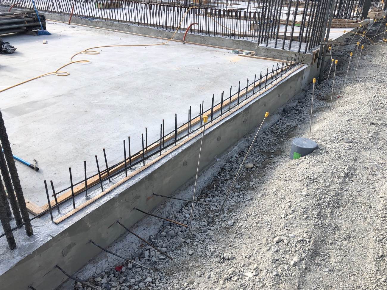 床と壁の打継部に設置しており、コンクリート打設後、打継部の小さな隙間で膨張し、より隙間を塞ぎ内部への漏水を防ぐことできます。