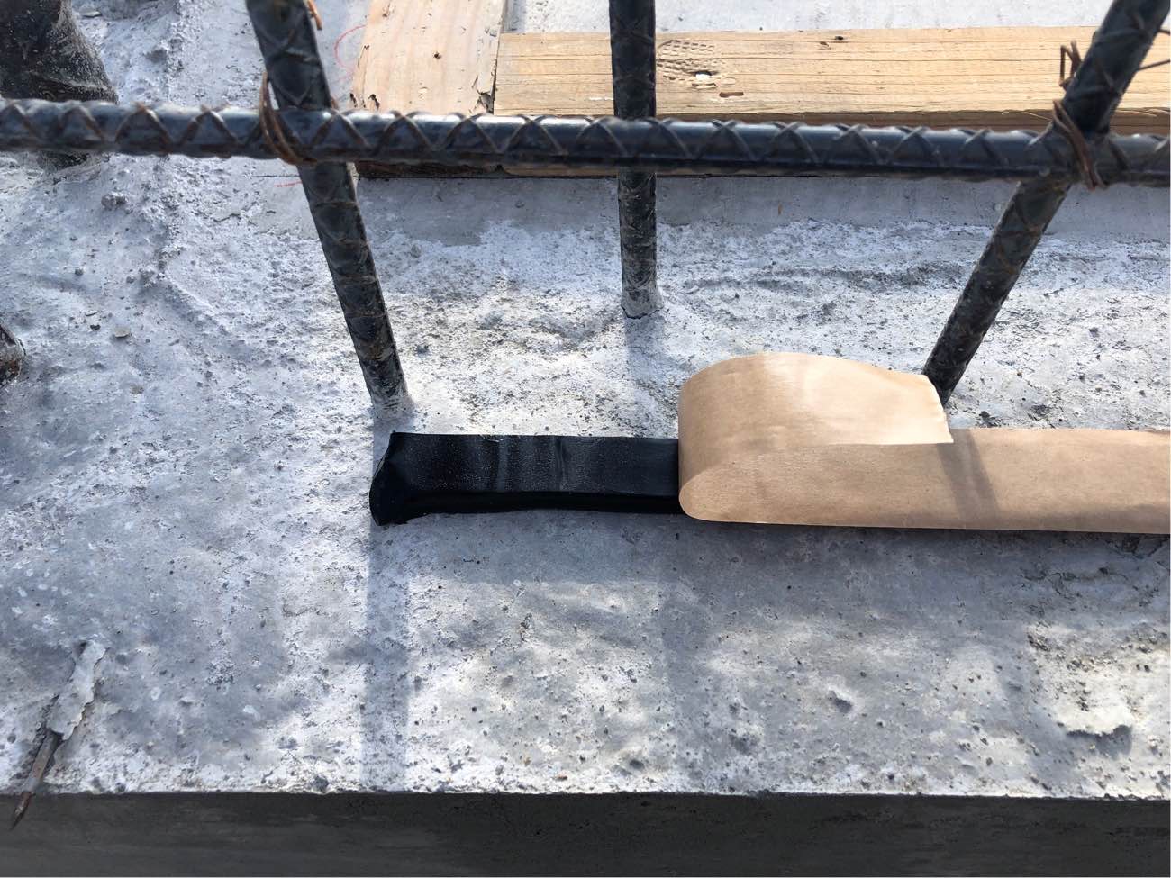 当現場では、1階壁の打継部に止水材を設置しています。