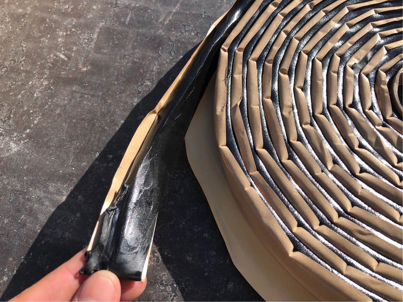 この黒いゴム状の製品が止水材なのですが、水と接することで膨張、隙間を埋める役割があります。
