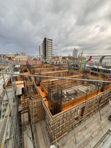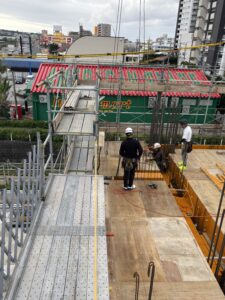 現在、11/19・11/20で型枠のスラブ張りを、行っています。