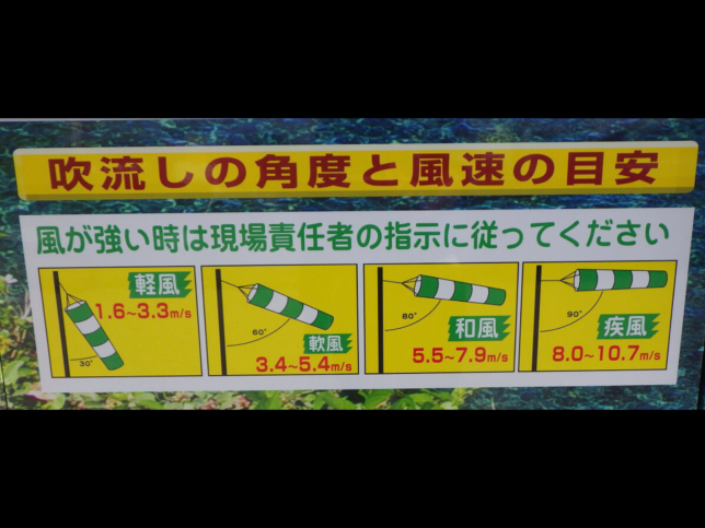 吹き流しは、作業内容ごとに異なる風速基準を共有し、現場全体の安全を確保するための基本的な管理手段です。