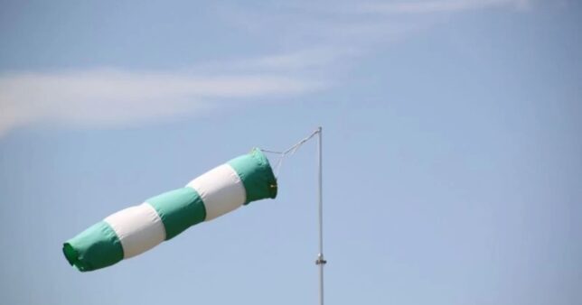 5m/s前後 吹き流しが明確に流れ始める(注意喚起レベル)