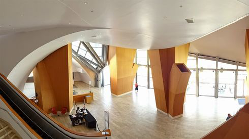 また、私が目を引かれたのは建築物の見た目がとても独創的なデザインをしているからです。ステンレススチールのファザード(ファザード=フランス語に由来し、建物の顔)に目をひかれました。ステンレススチールパネルだからこそ出来ているかもしれない花弁が舞い散っているようにも見える建築物で、強い日差しをステンレススチールのパネルが反射し美しいグラデーションを描き、それだけでなく彫刻作品やモダンアートのような存在感を示しています。