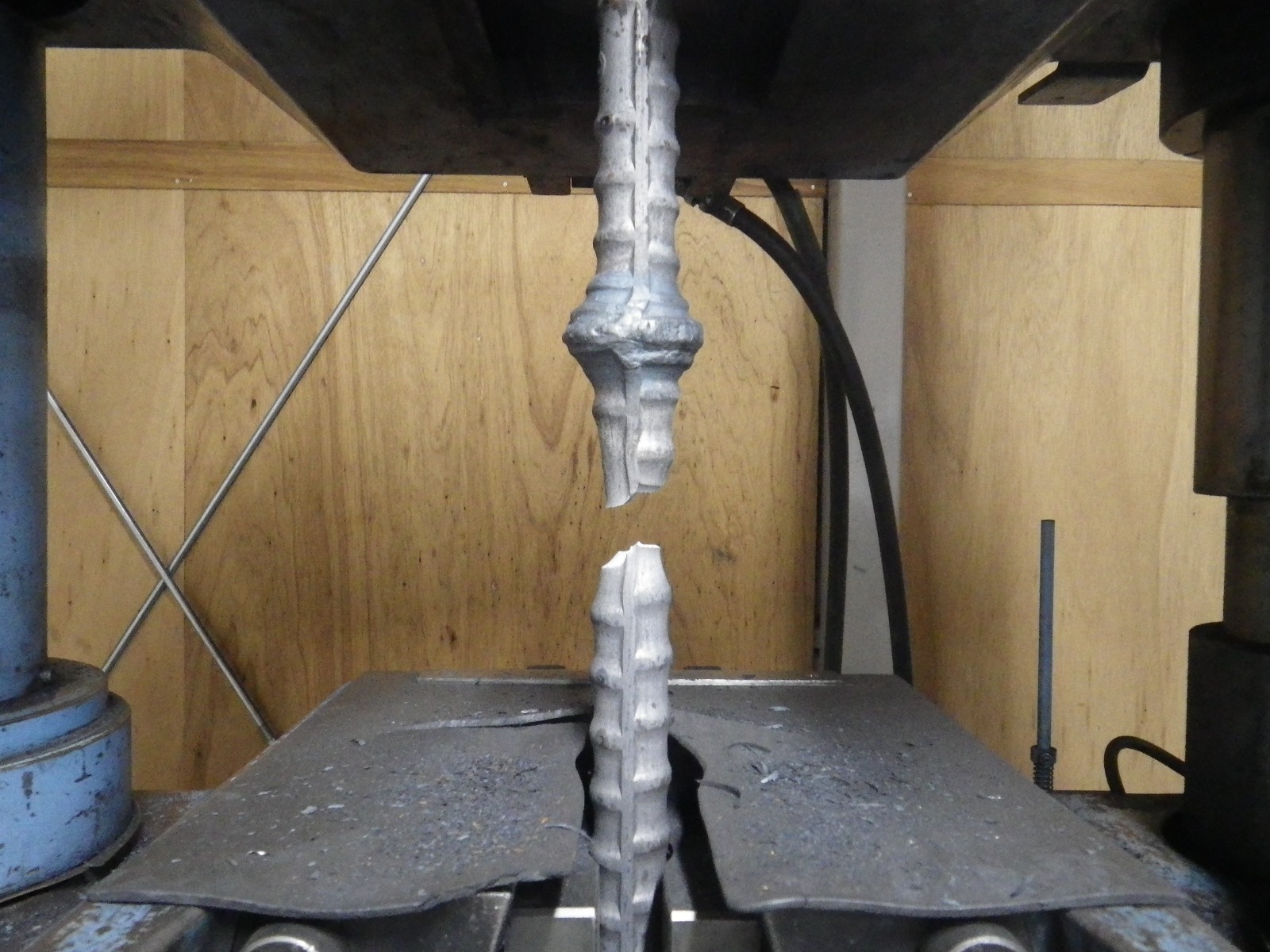 引張試験とは現場にて抜き取った供試体(鉄筋)を法的試験機関で引張試験機にかけ、切断されるまで引っ張り、基準通りの強度をもっているかを判断する試験です。
