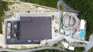 左側の茶色い建物が上記でお話しした、完成している浄水場施設になります。
