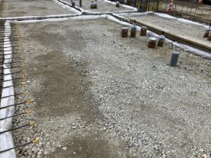 現場は基礎コンクリート打設完了し埋め戻しを終え土間コンクリート打設を一部完了しました。
