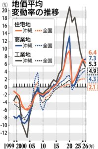 不動産鑑定士の報告でも「一部地域では地価の頭打ち感が見られ始めている」と言及されており、2026年の沖縄県の公示地価は、引き続き全国2位という力強い上昇を見せてはいますが、今後の動向を注視する必要がこれまで以上にありそうです。